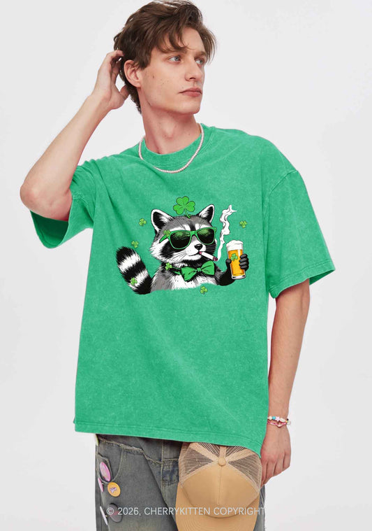 Shamrock Smoke Raccoon St Patricks Y2K Shirts Washed Tee Cherrykitten