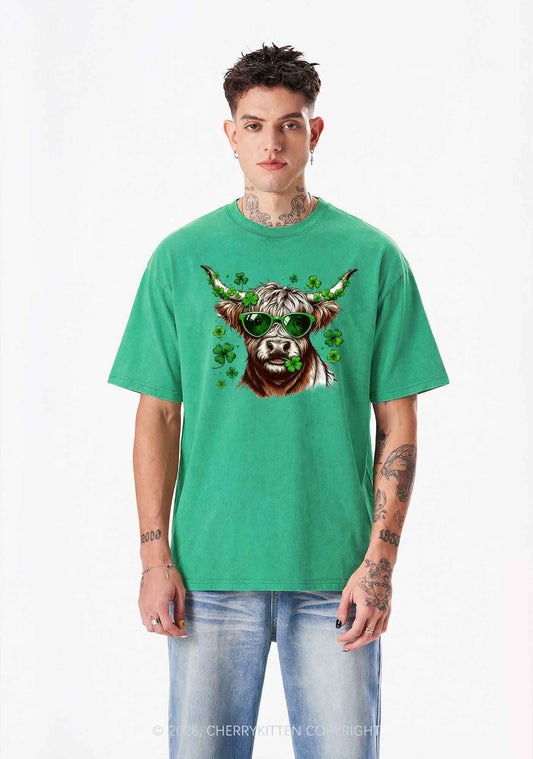 Highland Cow St Patricks Y2K Shirts Washed Tee Cherrykitten
