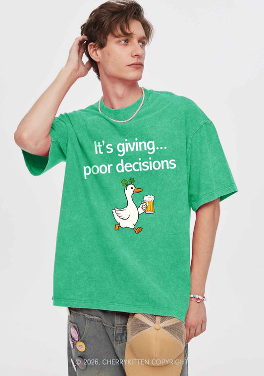 Its Giving Poor Decisions St Patricks Y2K Shirts Washed Tee Cherrykitten