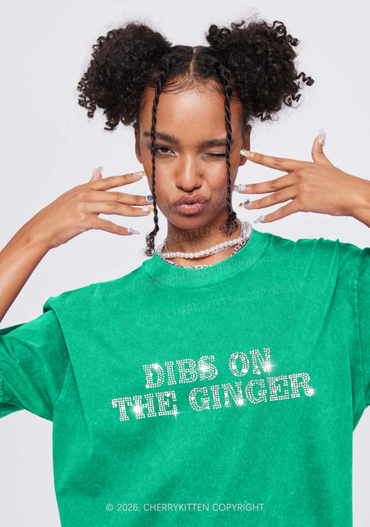 Rhinestone Dibs On The Ginger St Patricks Y2K Shirts Washed Tee Cherrykitten