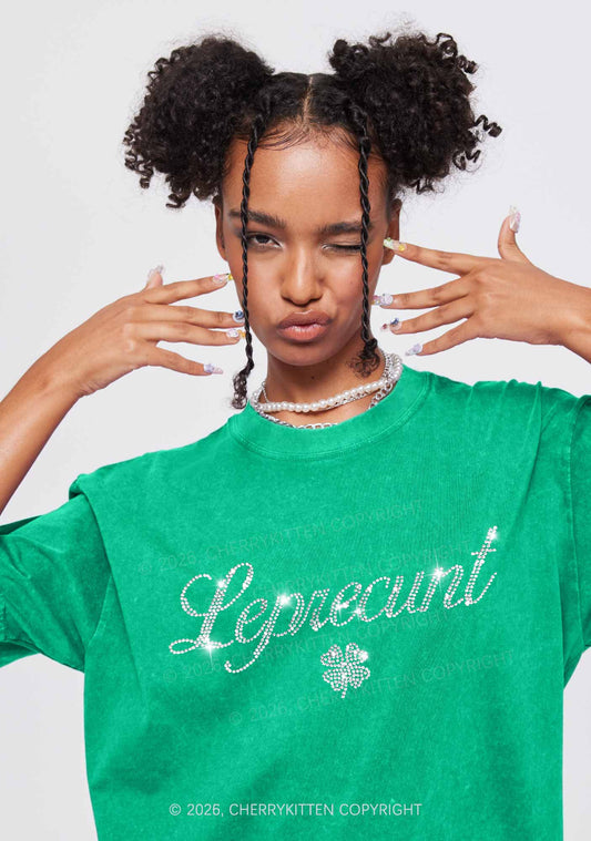 Rhinestone Leprecunt St Patricks Y2K Shirts Washed Tee Cherrykitten