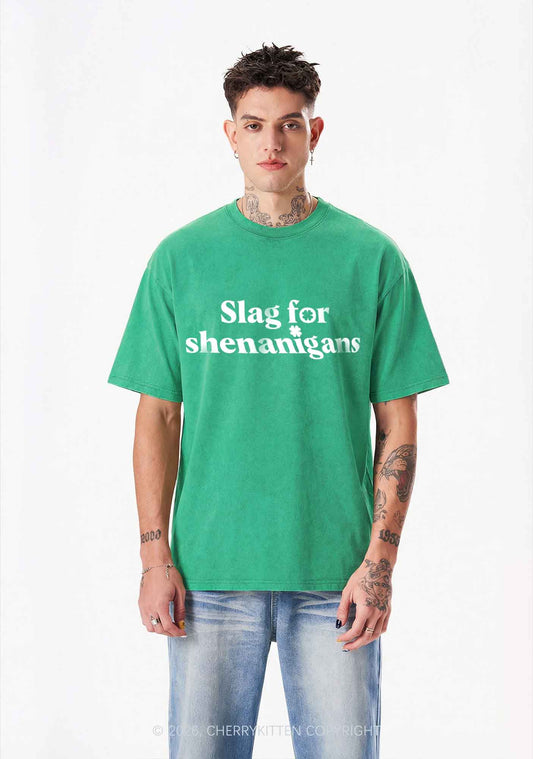 Slag For Shenanigans St Patricks Y2K Shirts Washed Tee Cherrykitten