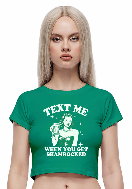 Text Me When You Get Shamrocked St Patricks Y2K Baby Tee Cherrykitten