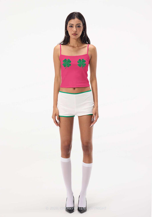 Glitter Four Leaf Clover St Patricks Y2K Spaghetti Strap Cami Cherrykitten