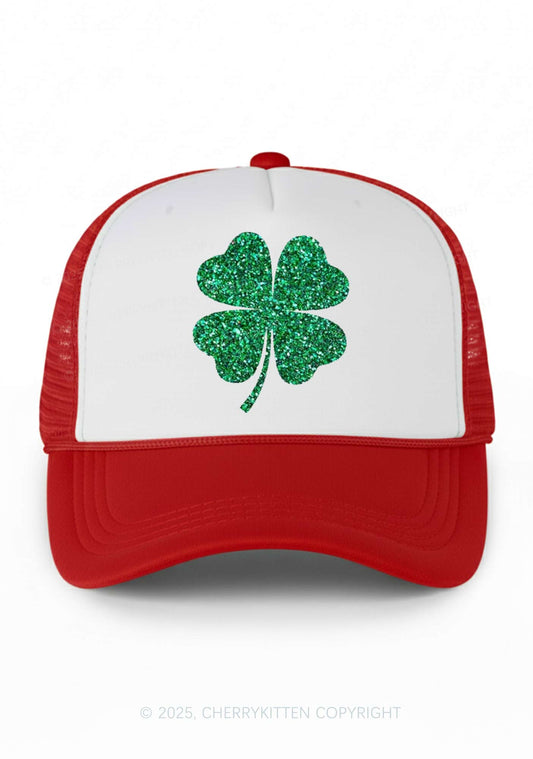 Glitter Lucky Shamrock St Patricks Y2K Trucker Hat Cherrykitten