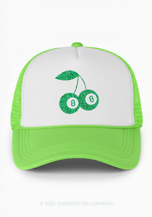 Glitter Lucky Eight St Patricks Y2K Colorblock Trucker Hat Cherrykitten