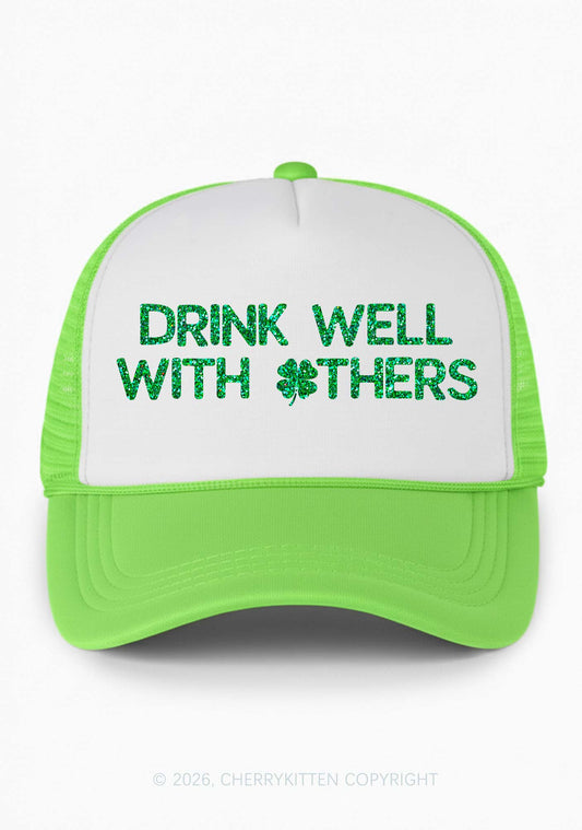 Glitter Drinks Well With Others St Patricks Y2K Colorblock Trucker Hat Cherrykitten