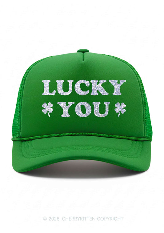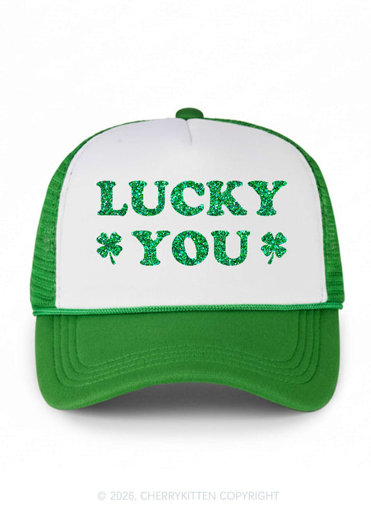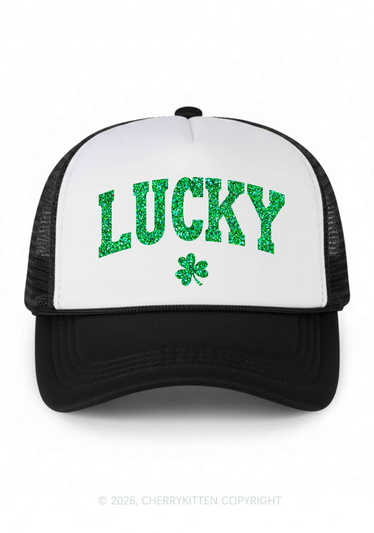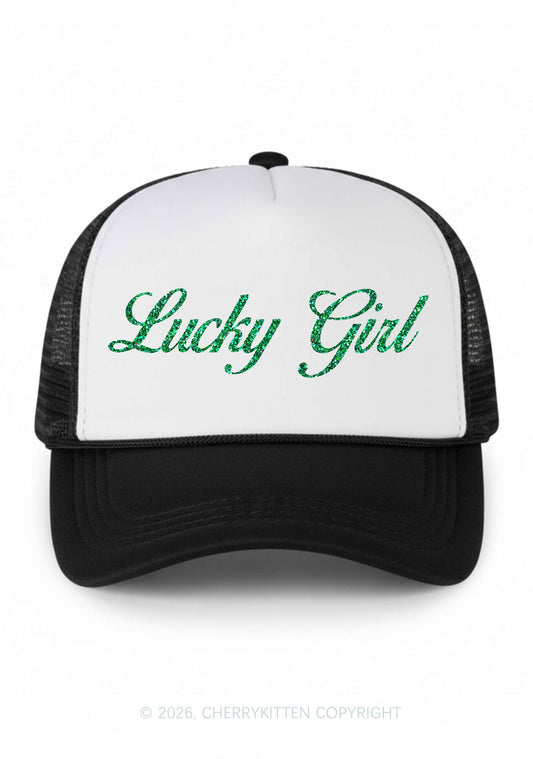 Glitter Lucky Girl St Patricks Y2K Trucker Hat Cherrykitten
