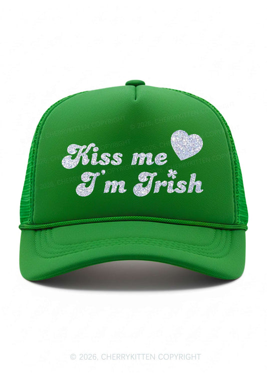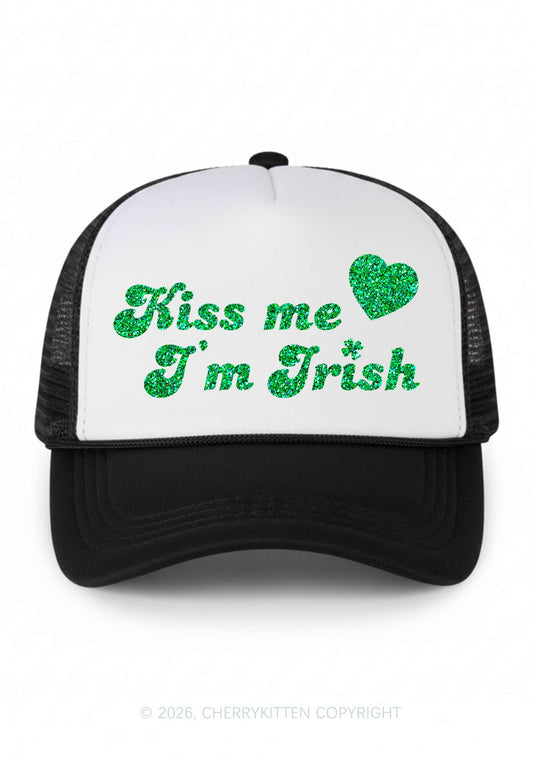 Glitter Kiss Me Im Irish St Patricks Y2K Trucker Hat Cherrykitten