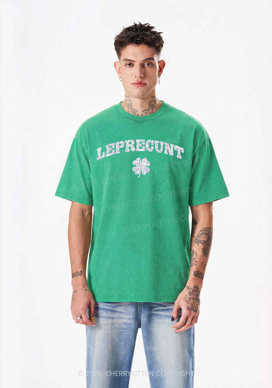 Glitter Leprecunt St Patricks Y2K Shirts Washed Tee Cherrykitten
