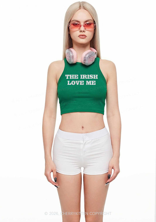 Glitter I Love Irish Boys St Patricks Y2K Crop Tank Top Cherrykitten
