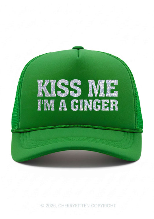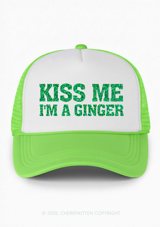Glitter Kiss Me Im Ginger St Patricks Y2K Trucker Hat Cherrykitten