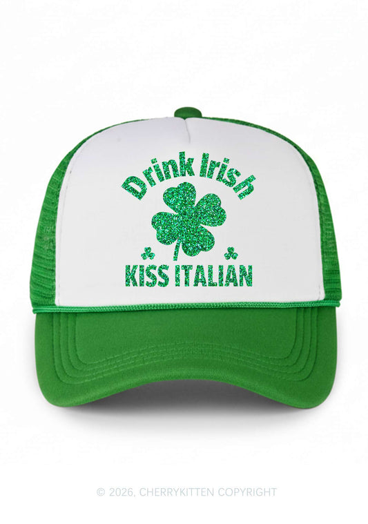 Glitter Drink Irish Kiss Italian St Patricks Y2K Colorblock Trucker Hat Cherrykitten
