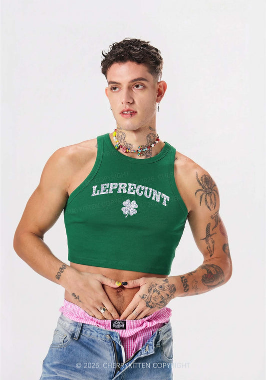 Glitter Leprecunt St Patricks Y2K Crop Tank Top Cherrykitten