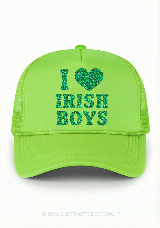 Glitter I Love Irish Boys St Patricks Y2K Trucker Hat Cherrykitten