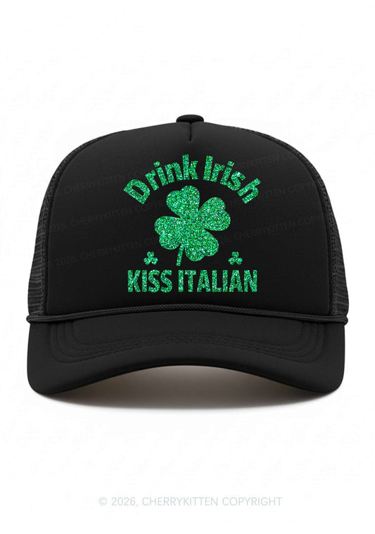 Glitter Drink Irish Kiss Italian St Patricks Y2K Trucker Hat Cherrykitten