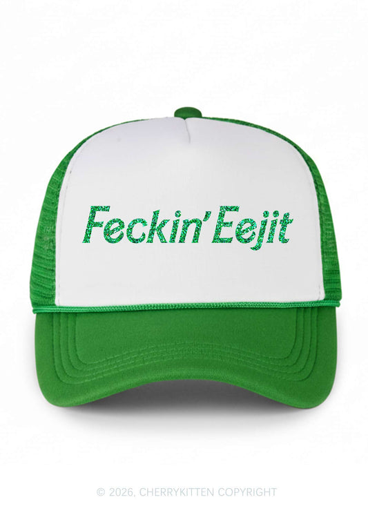 Glitter Feckin Eejit St Patricks Y2K Trucker Hat Cherrykitten