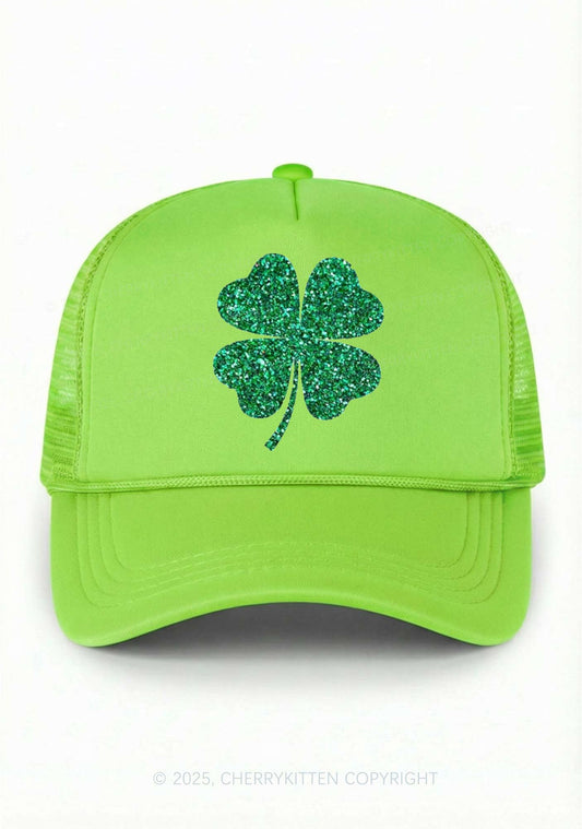 Glitter Four Leaf Clover St Patricks Y2K Trucker Hat Cherrykitten