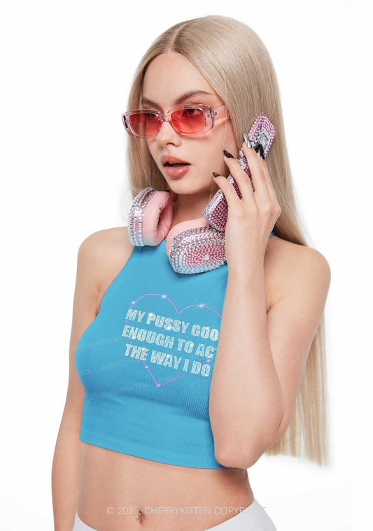 Rhinestone Good Enough To Act Y2K Crop Tank Top Cherrykitten