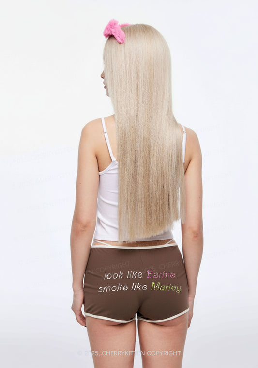 Rhinestone Smoke Like Marley Y2K Booty Shorts Cherrykitten