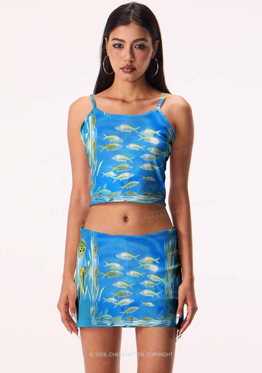 Undersea Fish Y2K Print Mini Skirt Cherrykitten