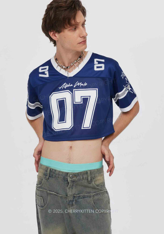 Custom Dark Blue Alpha Male Y2K Crop Sport Jersey Shirts Cherrykitten