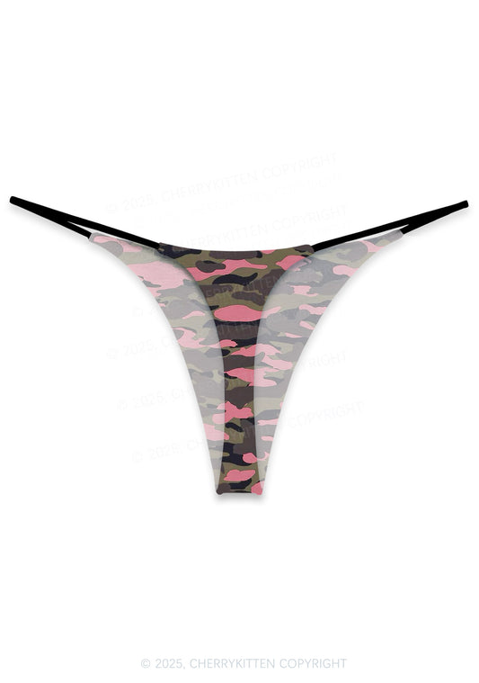 Pink Camouflage Y2K Print Bikini String Thong Cherrykitten
