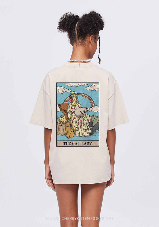 The Cat Lady Two Sides Y2K Shirts Washed Tee Cherrykitten