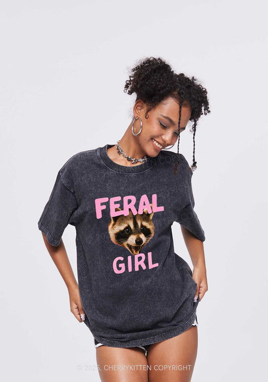 Feral Girl Raccoon Y2K Shirts Washed Tee Cherrykitten