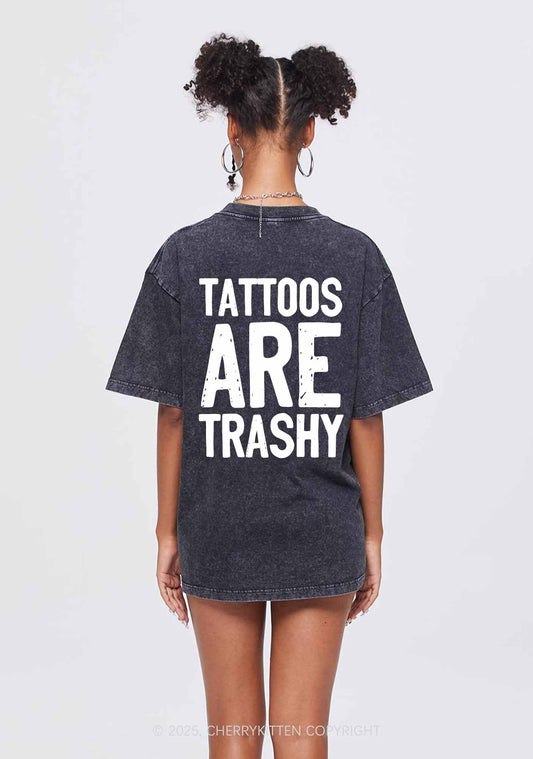 Tattoos Are Trashy Two Sides Y2K Shirts Washed Tee Cherrykitten
