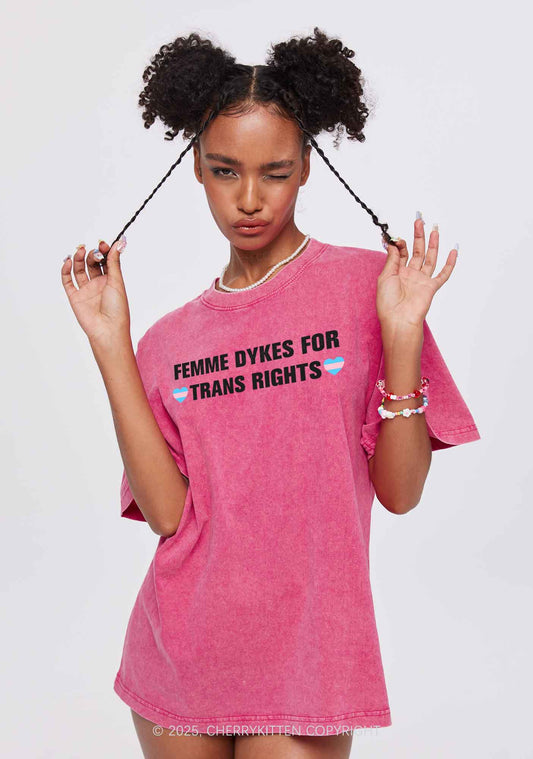 Femme Dykes For Trans Rights Y2K Shirts Washed Tee Cherrykitten