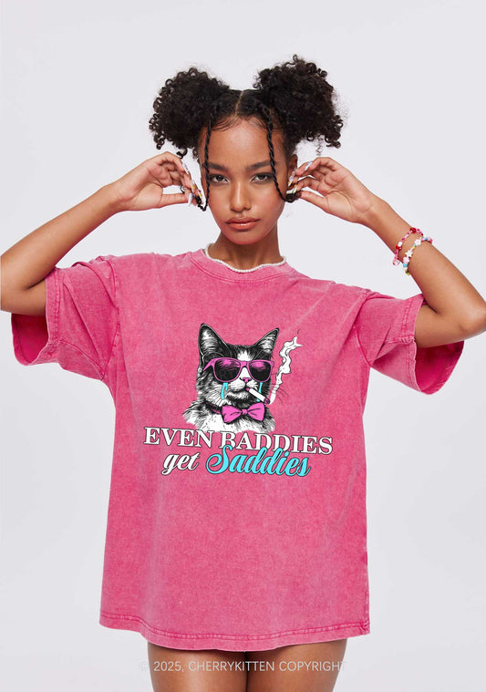 Baddies Cat Get Saddies Y2K Shirts Washed Tee Cherrykitten