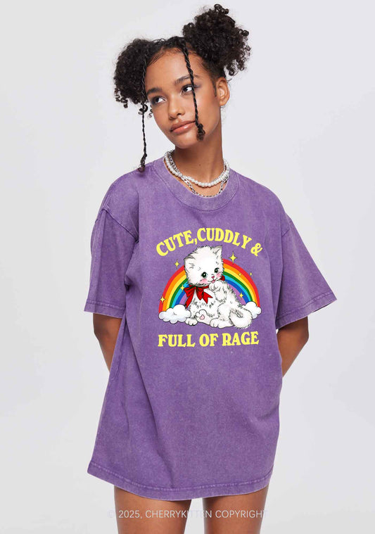 Cuddly Cat Full Of Rage Y2K Shirts Washed Tee Cherrykitten