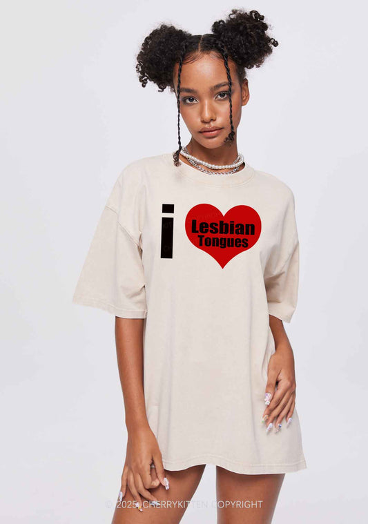 I Love Lesbian Tongues Y2K Shirts Washed Tee Cherrykitten