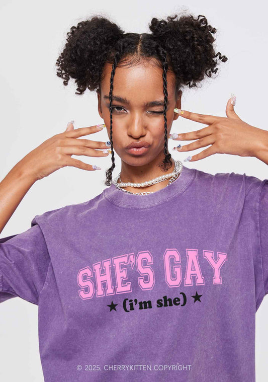 She Is Gay Y2K Shirts Washed Tee Cherrykitten