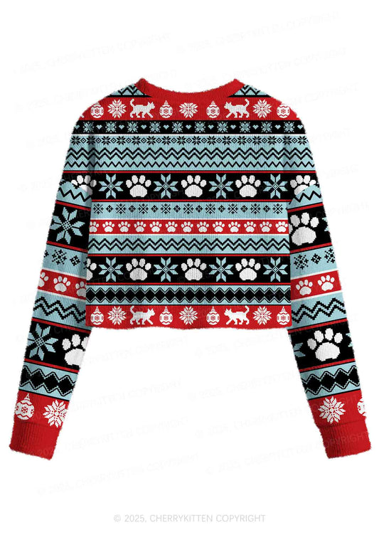 The Cat Lady Y2K Christmas Crop Knit Sweatshirt Cherrykitten