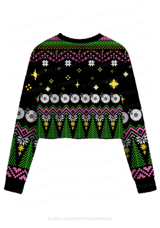 Ride A DJ Y2K Christmas Crop Knit Sweatshirt Cherrykitten