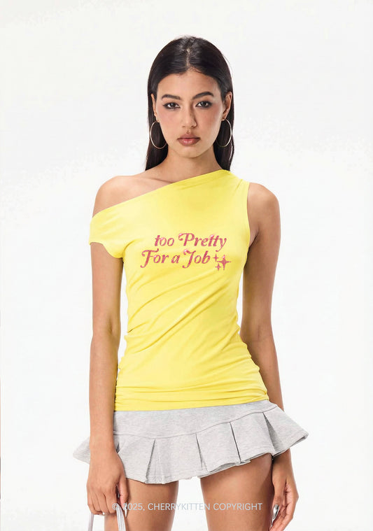 Rhinestone Too Pretty For Job Y2K Off Shoulder Tank Top Cherrykitten