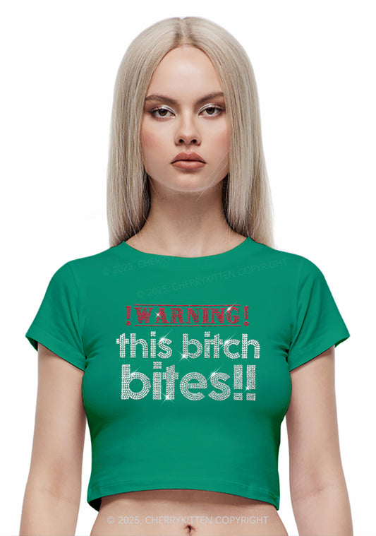 Rhinestone This Bxxch Bites Y2K Baby Tee Cherrykitten