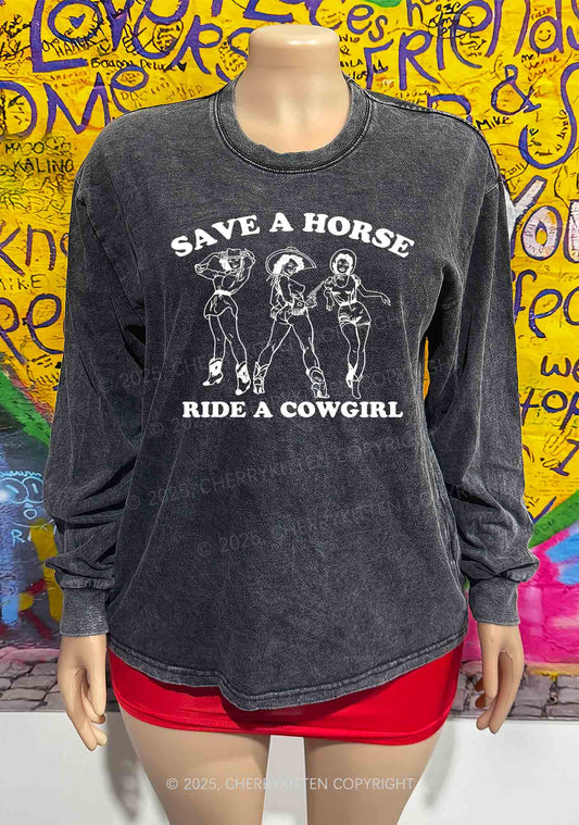 Ride A Cowgirl Pride Y2K Washed Long Sleeves Cherrykitten