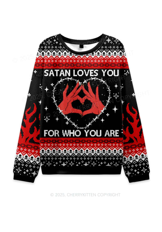 Halloween Satan Loves You Heart Y2K Christmas Knit Sweatshirt Cherrykitten