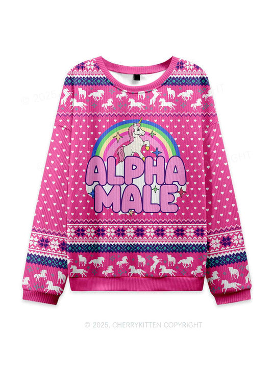 Rainbow Unicorn Alpha Male Y2K Christmas Knit Sweatshirt Cherrykitten