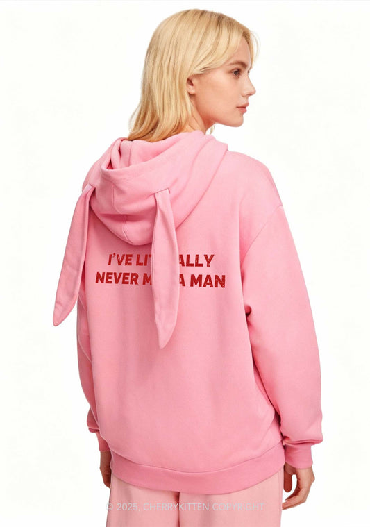 Never Met A Man Y2K Bunny Ear Zip Hoodie Cherrykitten