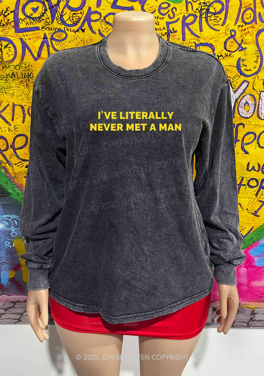 Never Met A Man Y2K Washed Sweatshirts Cherrykitten