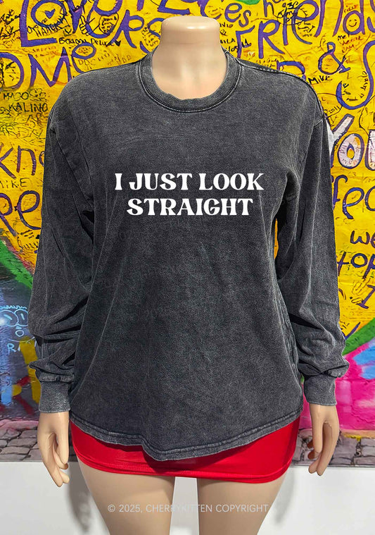 I Just Look Straight Y2K Washed Sweatshirts Cherrykitten