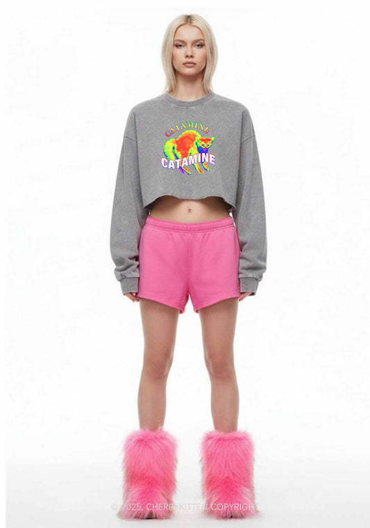 Thermal Cat Y2K Crop Washed Sweatshirts Cherrykitten