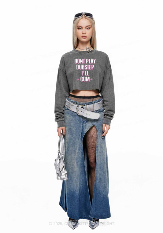 Dont Play Dubstep Y2K Crop Washed Sweatshirts Cherrykitten
