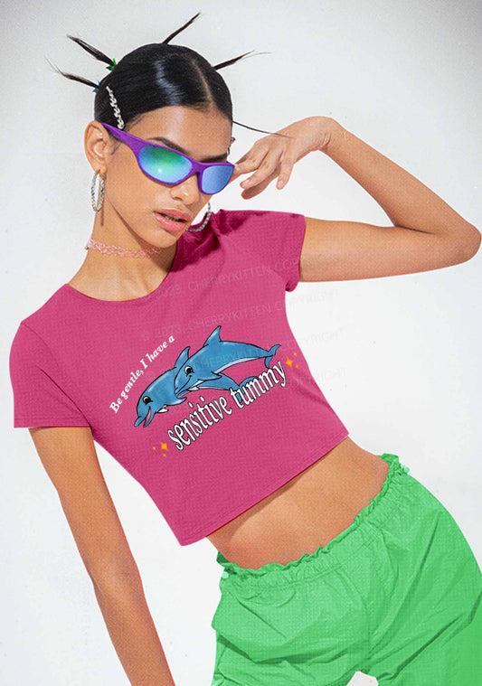 Sensitive Tummy Y2K Baby Tee Cherrykitten