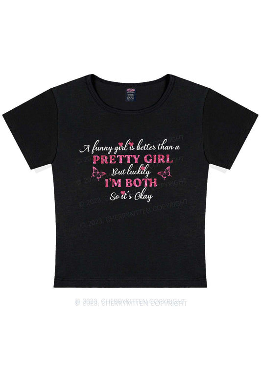 Curvy I'm Funny And Pretty Y2K Baby Tee Cherrykitten