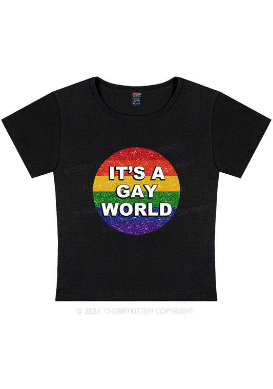 It's A Gay World Y2K Baby Tee Cherrykitten